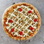 Kebab pizzaiceberg salata, cherry rajčice, prženi luk, blagi i ljuti umak, kebab, sir i rajčica